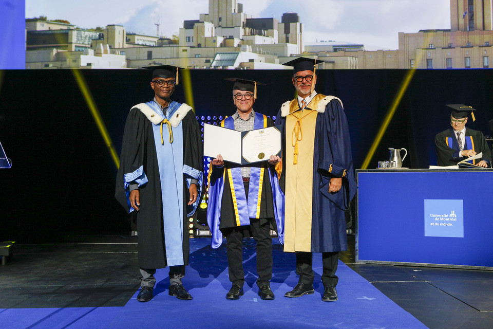 De gauche à droite : Carl-Ardy Dubois, doyen de l'ESPUM, Jean-Louis Denis, et Daniel Jutras, recteur de l'Université de Montréal.